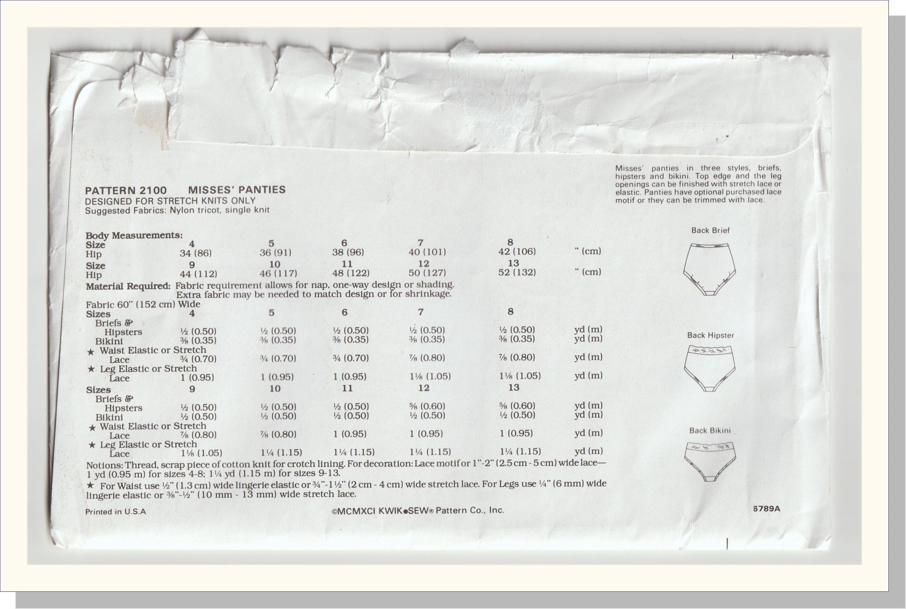 Women S Beautiful Briefs Panties Stretch Knit Kwik Sew Etsy