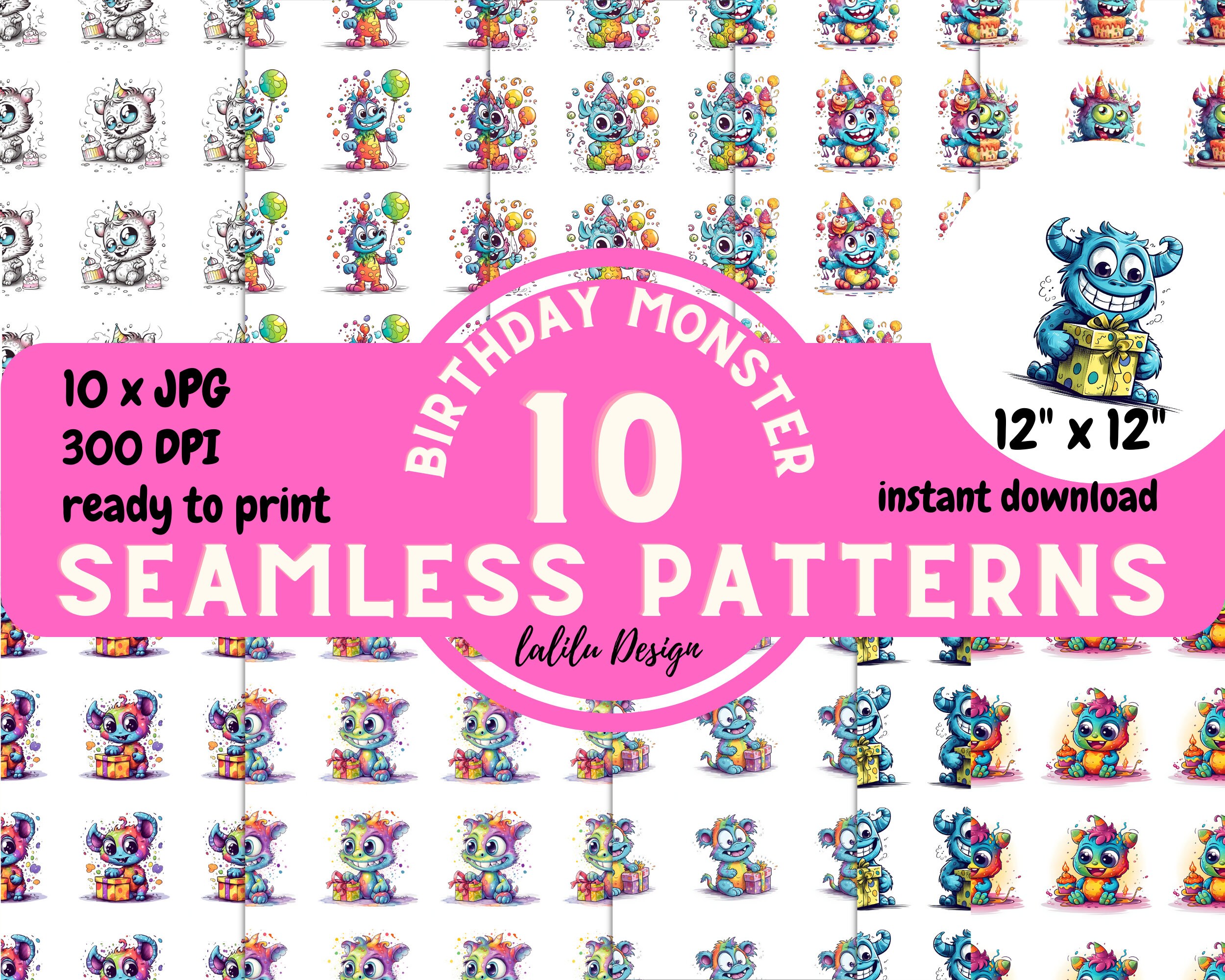 Cute Monster Seamless Pattern Pattern Instant Printout Etsy